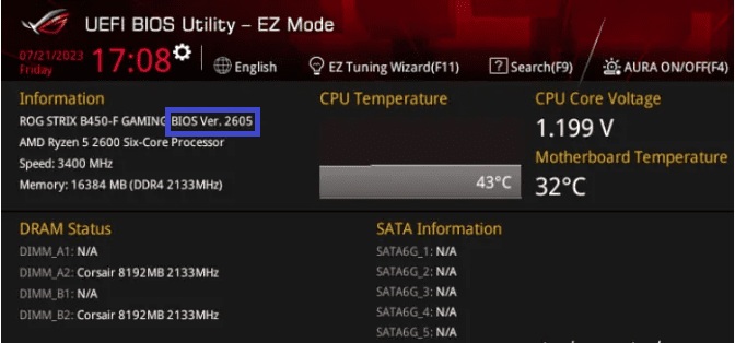 On modern motherboards with UEFI BIOS, finding the BIOS version is straightforward. The information is usually listed under sections such as Information or System Information.