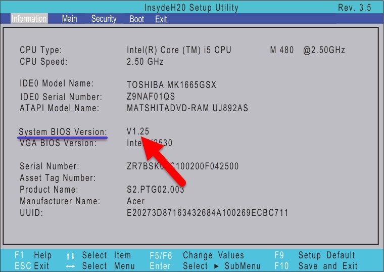 On older BIOS versions, the version details are typically located in sections like Information or System Information, under entries such as System BIOS Version or simply BIOS Version.
