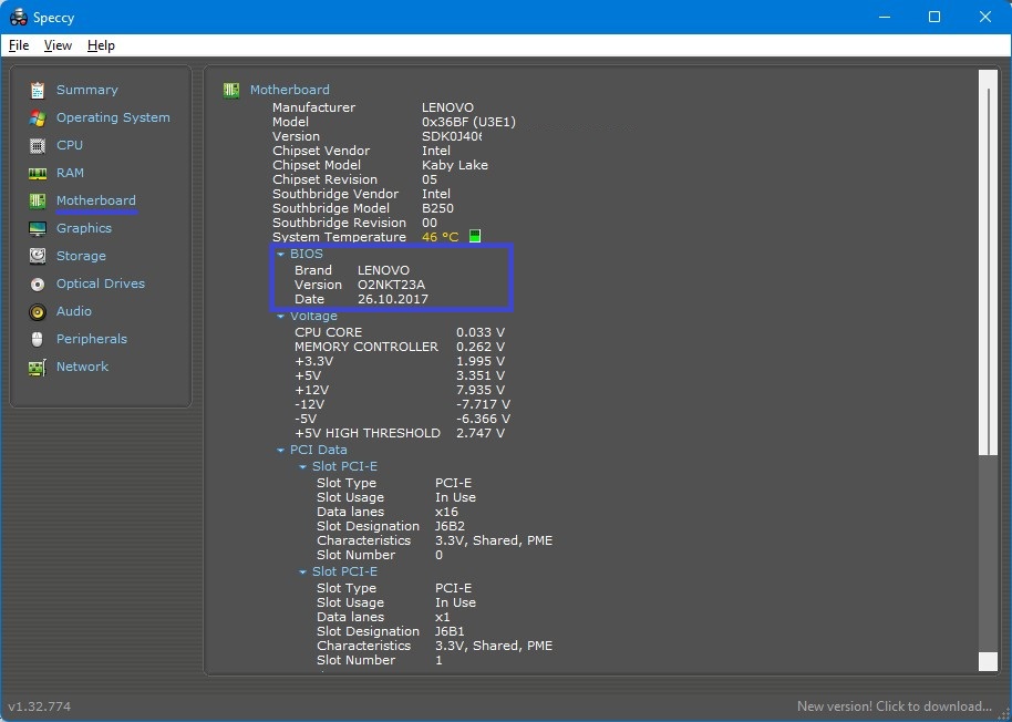 Another way to check the BIOS version is with the Speccy utility. Speccy provides detailed information about your system and installed hardware.
