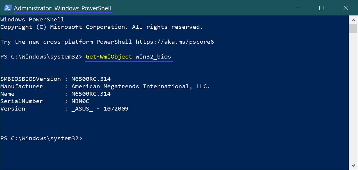 Another way to find out your motherboard’s BIOS version is through Windows PowerShell.