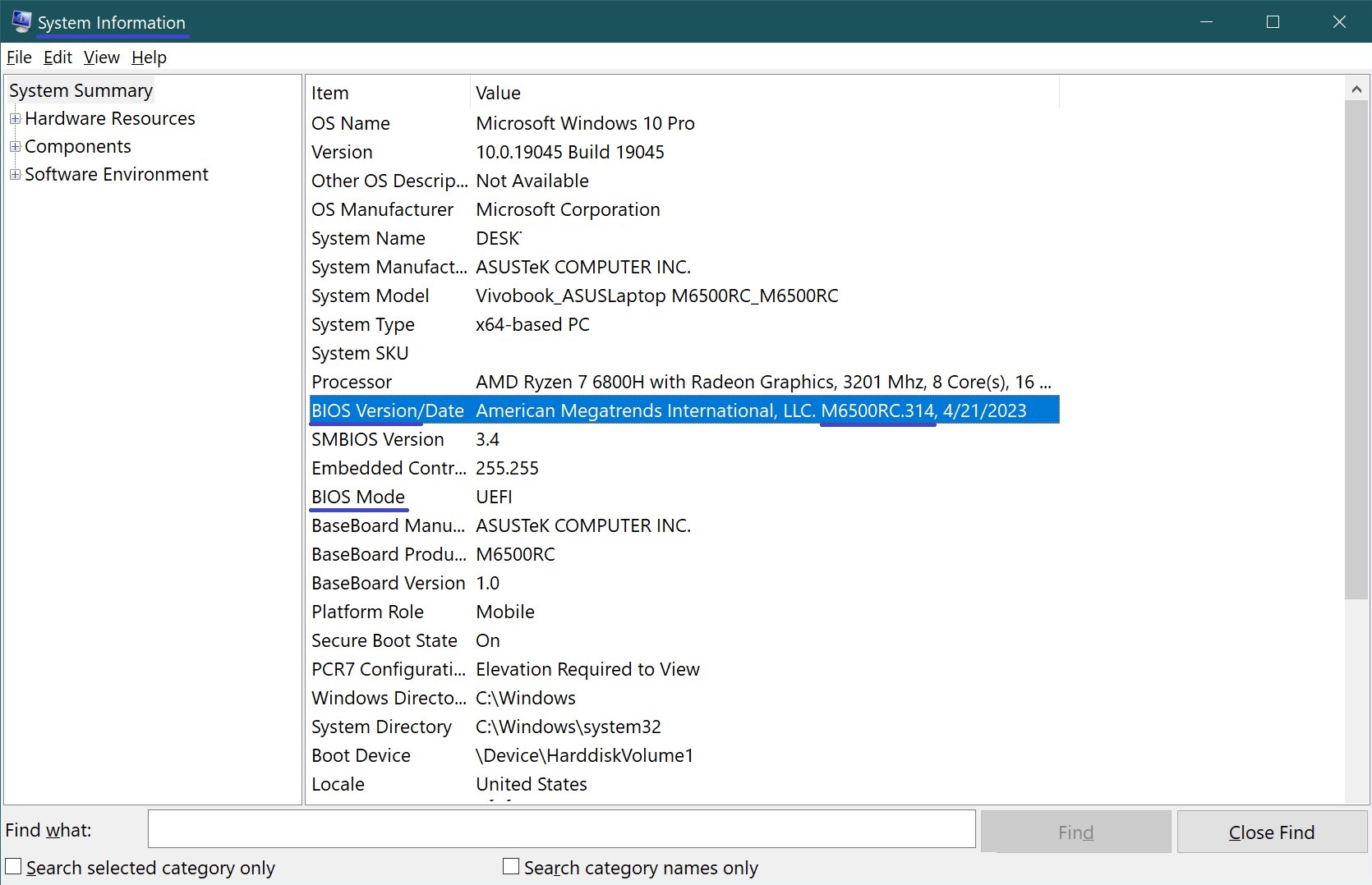 How to Check the BIOS Version Using the “System Information” Tool (msinfo32)