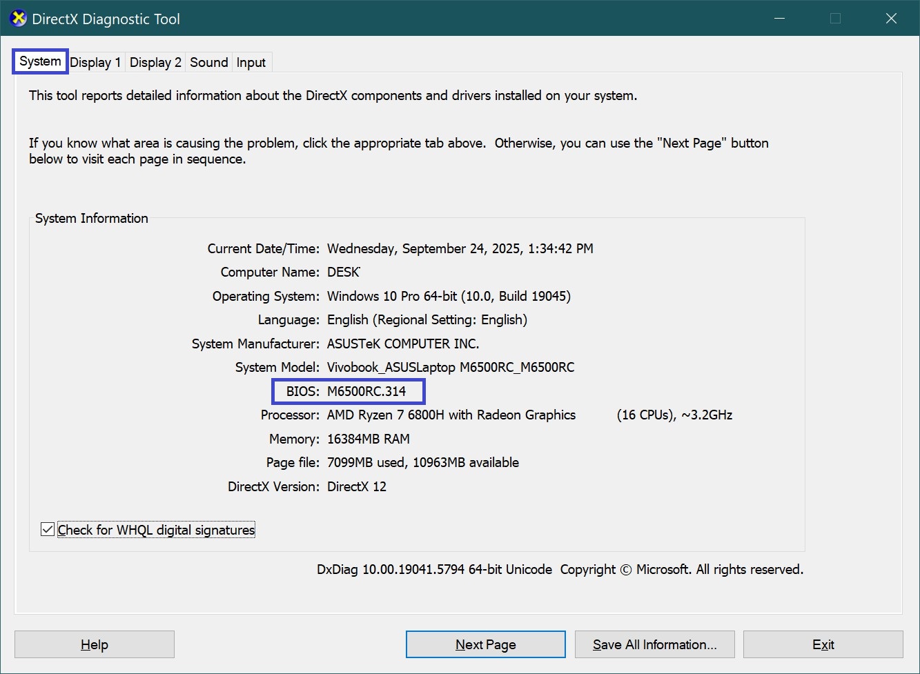 How to Check the BIOS Version Using the DirectX Diagnostic Tool